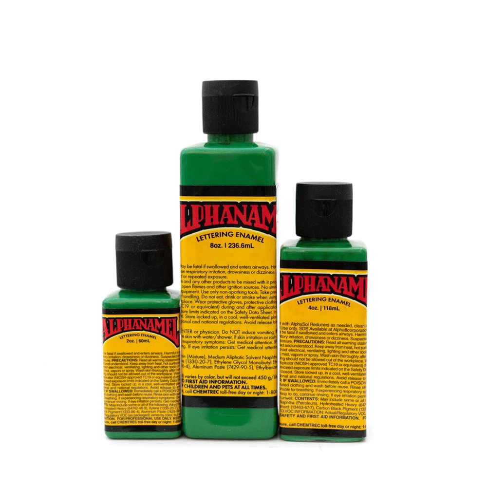 Alphanamel is a true artist’s paint. It is used by pinstripers all over the world. It goes on with a smoothness and durability unsurpassed in automotive pinstripe paint. It only takes a single stroke to cover. It is an alkyd lettering enamel, which will stand the tests of weather and time. It is also a favorite of sign painters, who use it as for indoor sign painting and outdoor signpainting. Known for it’s intense colors, durability and longevity, Alphanamel is by far the best lettering enamel and pinstriping enamel on the market. Alphanamel is also an artist’s paint used as a fine art canvas paint and for clothes and shoes, as a garment paint. It can be used as a leather paint as well as an airbrush paint. Many artists use Alphanamel as an outdoor mural paint, window paint and as a glass paint. Alphanamel dries glossy. It works well with hardener and clear coat as well.