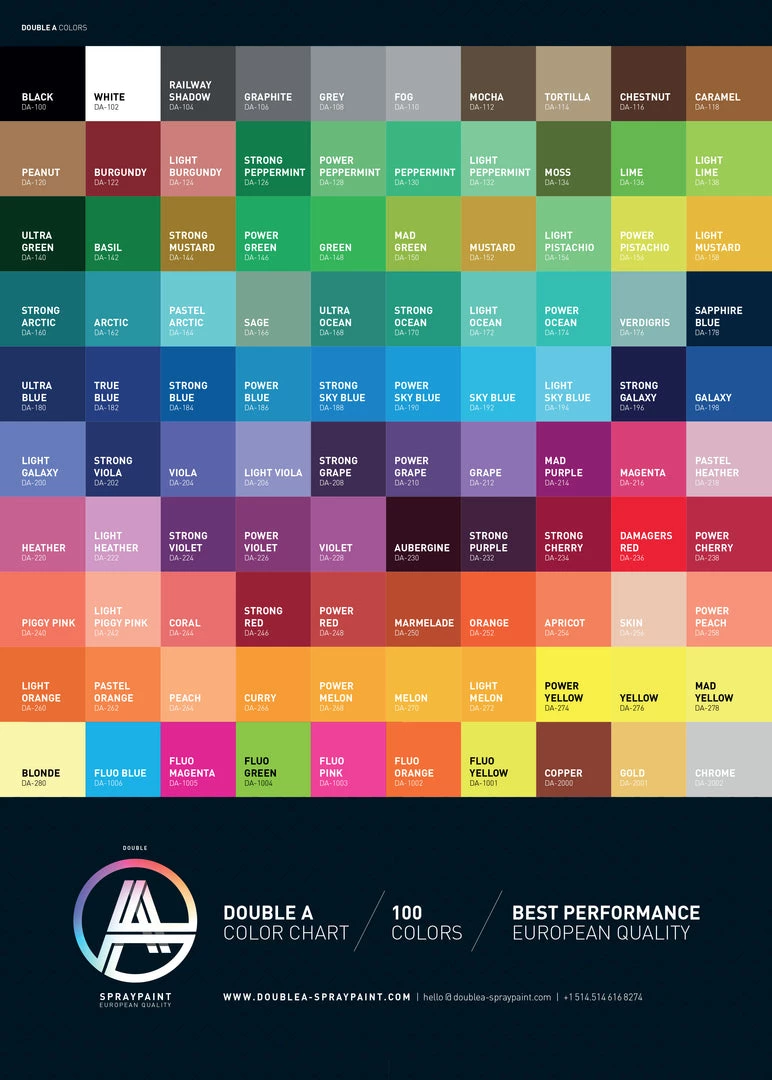 The new “Double A” can features a high pigment, superior valve system in a 400ml can, with the new Lindal valve which allows you to get a high pressure output for bombing and fast paintidamng, or low pressure lines for pieces fine work. Manufactured in the European Union.