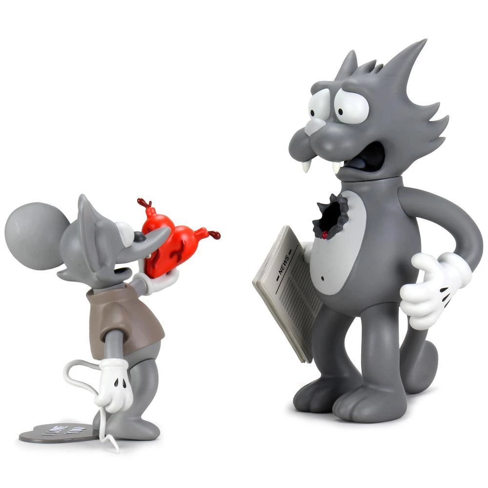 The love-hate, yin-yang, eternal connection that is Itchy and Scratchy are finally a part of the Kidrobot x Simpsons collection, by popular demand. The iconic duo is a mainstay for The Simpsons universe, more-so than typical background characters could ever hope to be. With a beating heart in hand, Itchy measures in at 4.5″ tall and Scratchy at 8″ tall.