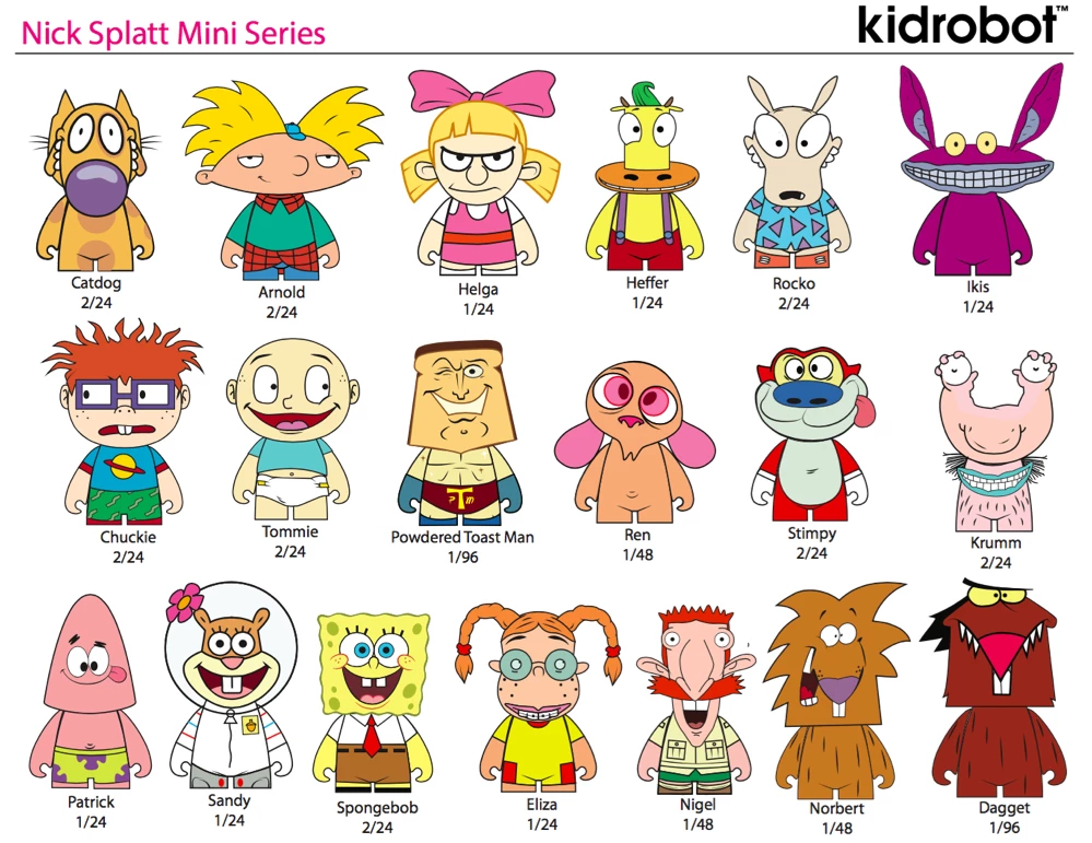Kidrobot and Nickelodeon have teamed up to give 90s kids some Nick 90’s Nostalgia with the new Nickelodeon Nick 90’s Blind Box Mini Toy Figure Series 1. This collectible art toy series features your cartoon characters from your favorite Nickelodeon tv shows including Spongebob Squarepants, CatDog, The Angry Beavers, The Wild Thornberrys, Hey Arnold!, The Ren & Stimpy Show, Aaahh!!! Real Monsters, Rugrats and Rocko’s Modern Life.