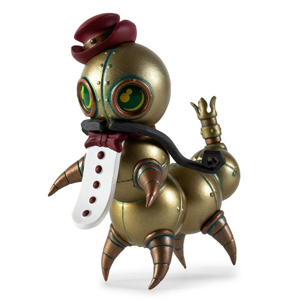 Welcome to Mechtoria! Kidrobot pulls back the curtain to the long forgotten characters of the world of Mechtoria. We have caught glimpses of it before with the likes of the Cognition Enhancer Dunny. Now follow us down the darkened cobbled streets and meet the artistic cast of Doktor A’s almost unimaginable world! Gamblers, musicians, entertainers and more make up the cast of The Mechtorians in this all new collectible Kidrobot Mini Art Figure Series by Doktor A!
