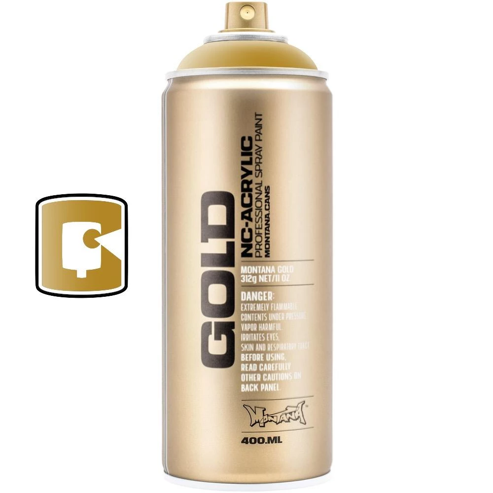 Metalic colors are a solvent-based, nitro-acrylic spray paint. High covering, quick drying, weather- and abrasion proof when fully dry and cured. Metallic Effects are perfect for universal use – it can be applied on many surfaces like canvas, concrete, brick, wood, cardboard and others. Montana GOLD silver and gold matt are Metallic color shades which are abrasion- and weatherproof but less shiny compared to Montana GOLD Chrome Effect colors. The Montana Low-Pressure System allows a soft and easy use for a perfect can and line control. Compatible with the Montana Level Caps. Perfect in Combination with Montana GOLD colors as well as METALLIC EFFECT colors.