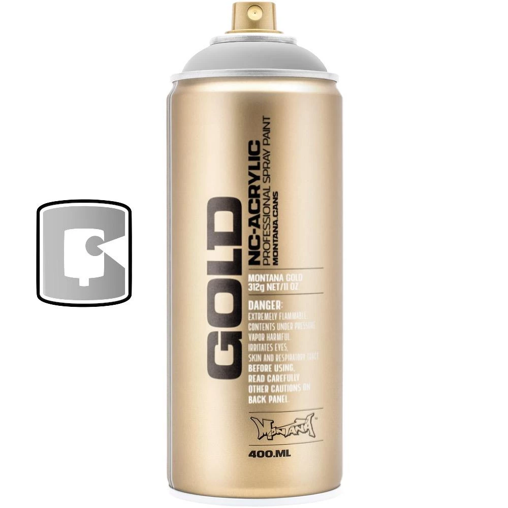 Metalic colors are a solvent-based, nitro-acrylic spray paint. High covering, quick drying, weather- and abrasion proof when fully dry and cured. Metallic Effects are perfect for universal use – it can be applied on many surfaces like canvas, concrete, brick, wood, cardboard and others. Montana GOLD silver and gold matt are Metallic color shades which are abrasion- and weatherproof but less shiny compared to Montana GOLD Chrome Effect colors. The Montana Low-Pressure System allows a soft and easy use for a perfect can and line control. Compatible with the Montana Level Caps. Perfect in Combination with Montana GOLD colors as well as METALLIC EFFECT colors.