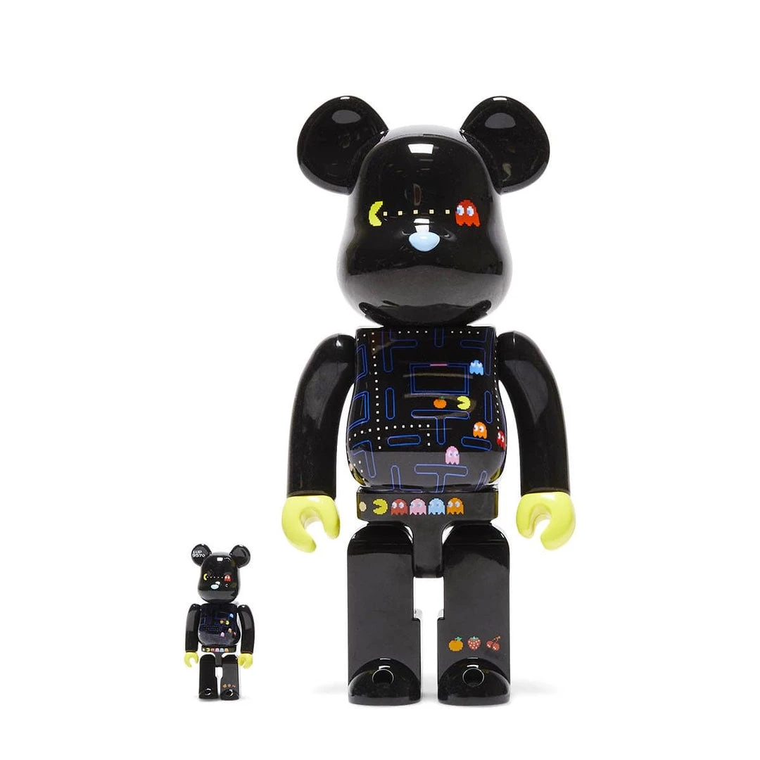 Set includes both the 100% and 400% sized bearbricks, standing at 7cm and 28cm tall respectively.