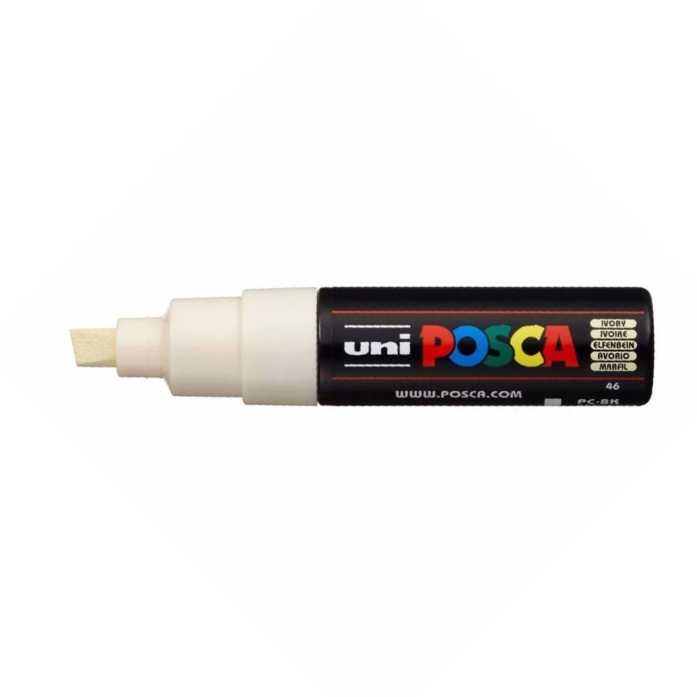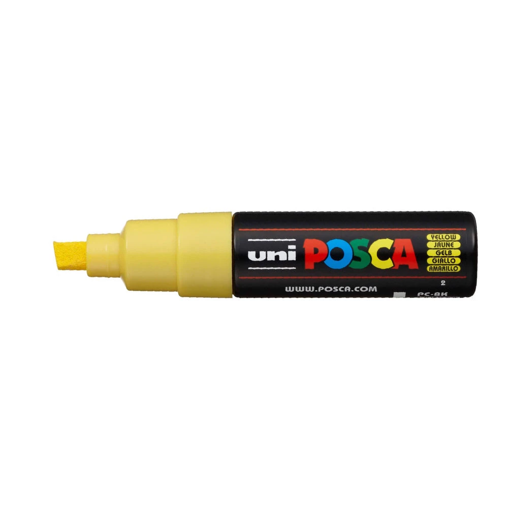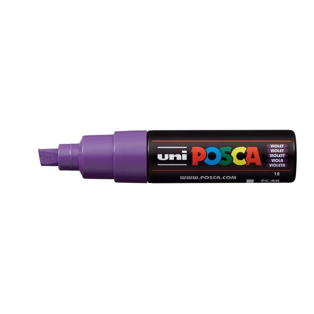 Posca PC-8K broad chisel tip draws neat curves and covers large surfaces in a large range of colours. Ideal for flat-tints; ‘Street Art’ writing or signs; for beginners and professionals.