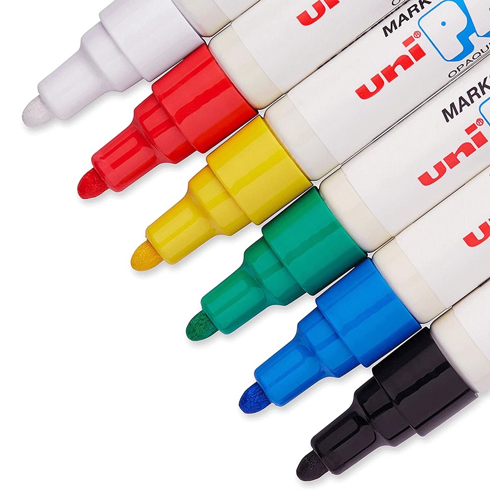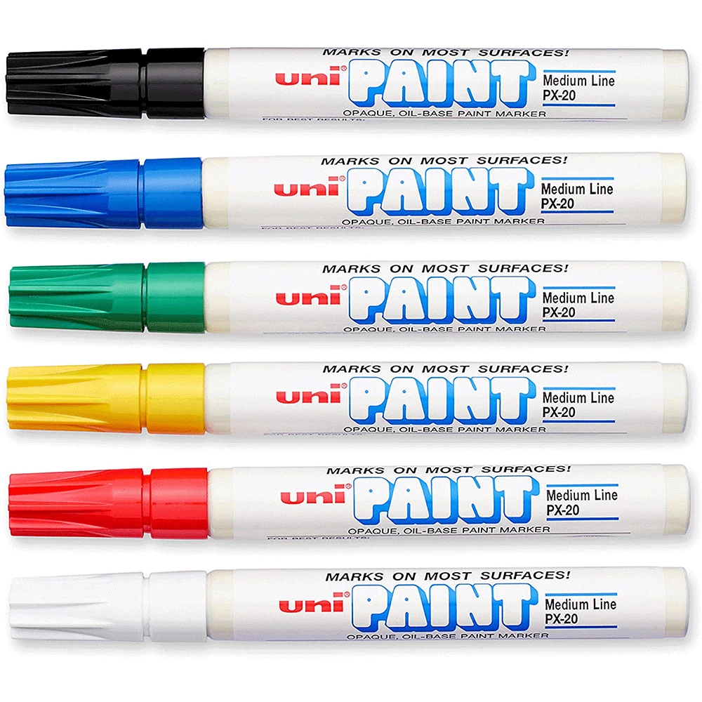 Oil-based paint in a handy marker. Uni Paint marks on virtually every surface! Extensively used by manufacturers, construction professionals and hobbyists. Great for marking sheet metal, auto parts, glass, pipes, wood, concrete, leather, stone, tile, and more!