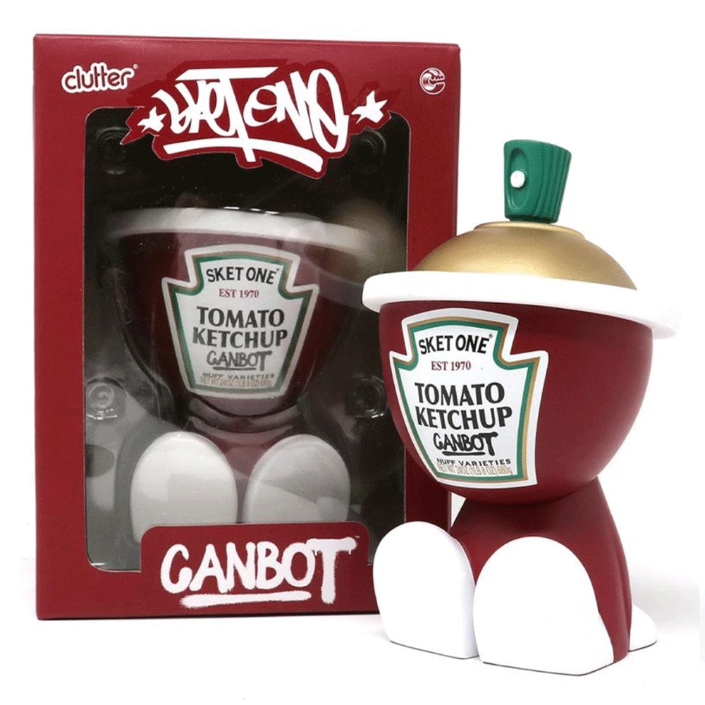 Serving it up is Clutter and Legendary street artist Sket One, introduce you to their newest member of the Canz Family… the SKETCHUP! Sket Taking one of his most loved designs and wrapping it onto the Canbot platform by UK artist Czee13, collectors will be excited to see this design on a vinyl toy for the first time in over 10 years! Bringing together art, toys, food, and everything that gives us joy in life, Sket One’s Sketchup design is deliciously beautiful, and the perfect addition to any burger, or Canbot collection! Standing at 5.5” with its signature rattle.