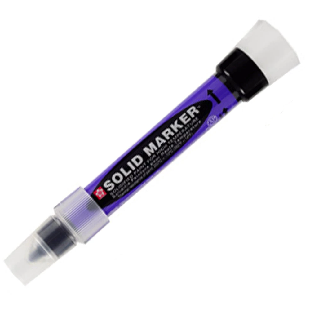 A tough marker for tough jobs, the Solid Marker is solidified paint in a marker stick. It marks through oil, grease, rust, mud, snow and more, and is great for inside or outside use. The paint dries within minutes, and is permanent once dry. The special twist mechanism that advances the paint keeps it fresh and ready to use. The tip offers a broad stroke and can be trimmed with knife for smaller marks.