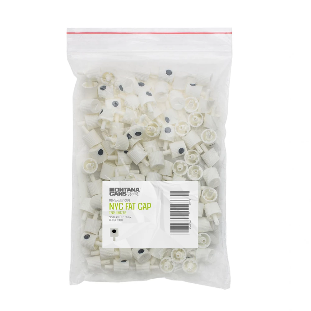 The New York Fat Cap (or NY fat cap), is a staple for graffiti artists the world over. It is a universally gifted cap that has both practical benefits such as efficient delivery of paint, as well as clean, crisp lines. Making it a great tagging cap, outlining cap, filling cap or object spraying cap. Also loved by urban artists, street artists, fine artists and DIYers doing art and craft projects, the NY fat cap has an average spray width of 4cm to 6cm which ejects paint evenly, leaving a balanced distribution of paint within its solid, clean line. Fitting on all female cans like Montana GOLD, Montana BLACK and Montana WHITE, its classification and naming as a “fat cap” was probably attained in a period of 70’s-80’s New York graffiti when there were not many fatter caps available. All though relatively thin for a fat cap, the NY fat cap allows users to create solid, even lines at a fast pace. The spray width changes when applied at a further distance from the substrate. For skinnier lines, spray from a closer distance. For wider lines, spray from a further distance.