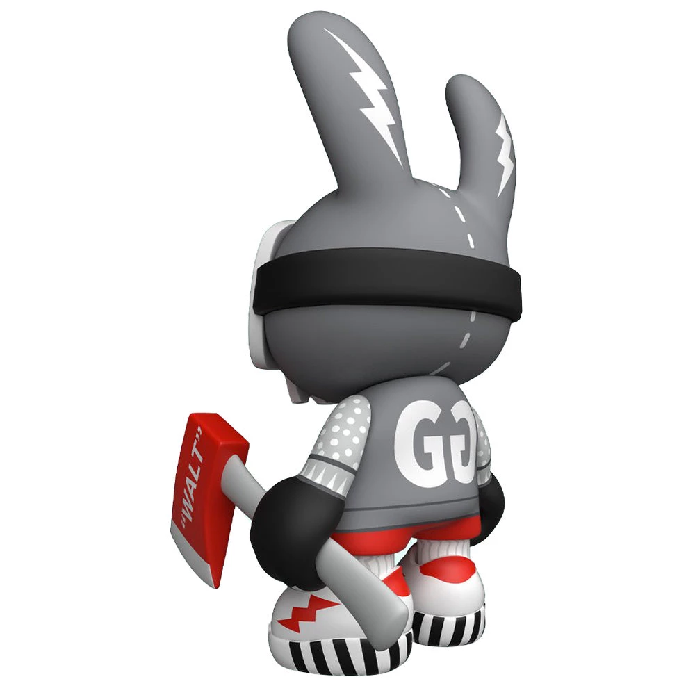 From the deepest depths of style hell comes Fashion Guggi SuperJanky, the latest in Guggimon’s iconic Fashion Horror series. Created by international hip hop horror icon Guggimon, this ultra-rare SuperJanky features a “Walt” axe (used for destroying animated cartoon characters where they breed), the latest kicks, red handbag, and of course Guggi’s trademark stick & poke “GUG MOM” tat. Super limited, only 333 made.