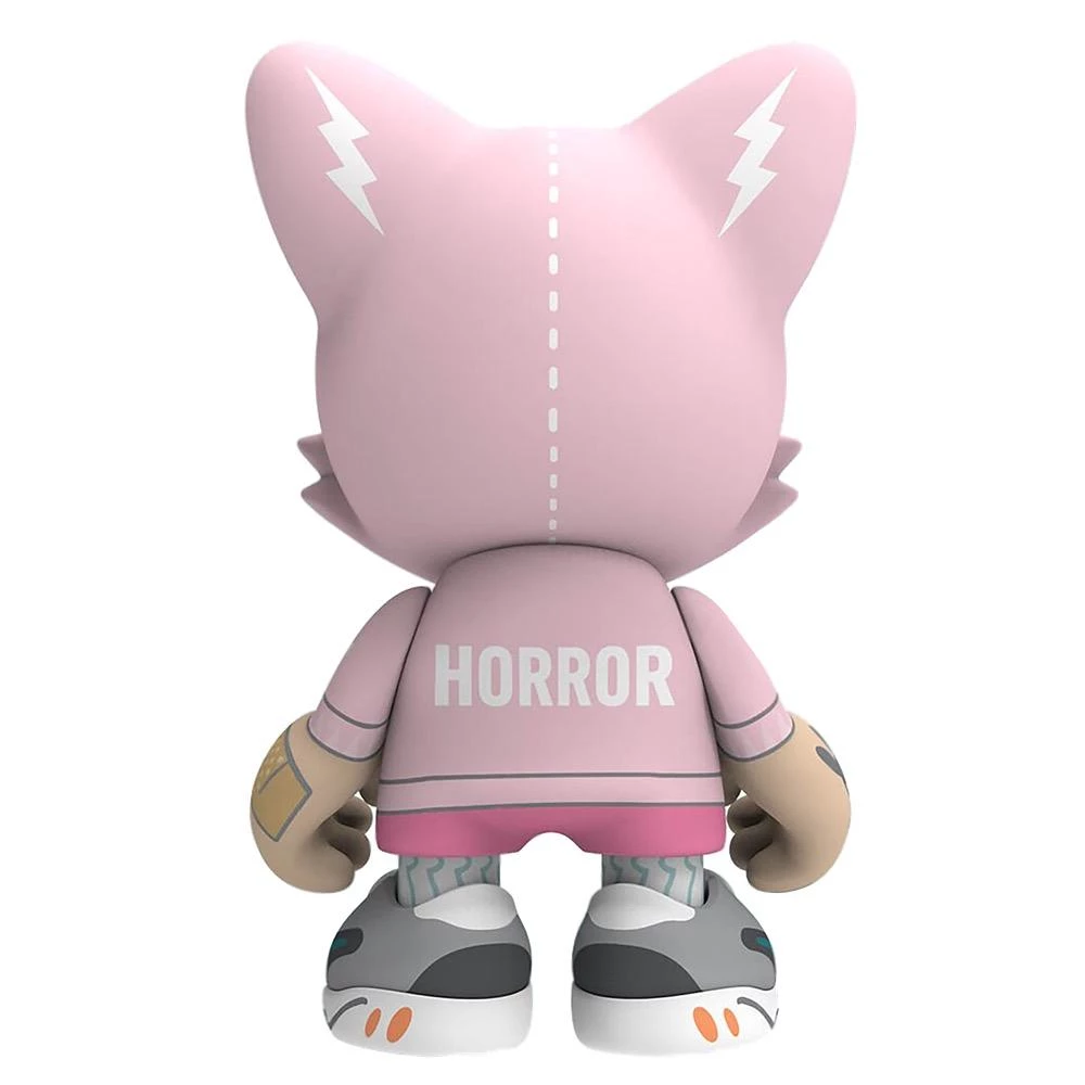 Created in collaboration with legendary street/hip-hop/horror artist Guggimon, Fashion Horror SuperJanky stands a towering 8-inches tall and features a removable skull mask, “Axe”, gilt Guggi handbag and lots of attitude.