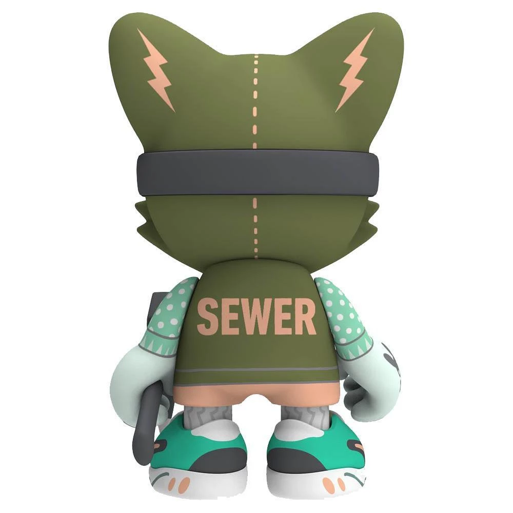 Lured out of the murk comes the most fearsome icon of fashion: second in Guggimon’s Fashion Horror SuperJanky series, FASHION SEWER features high rise pink pants, super-fresh Wave Runners, “SEWER” full zip hoodie, axe, gilded Guggi bag, and removable mask made from a sasquatch tooth.