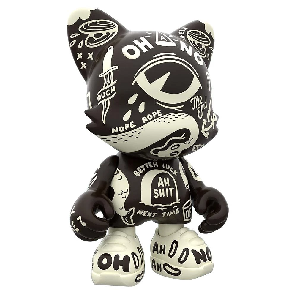 A special, super-limited inverse “black-out” version of UK-based McBess’ original sold-out “Oh-No” SuperJanky. 8 incredible inches of tattooed brilliance, this special release features inverted colors— Janky drank so much black is white, and white is black.