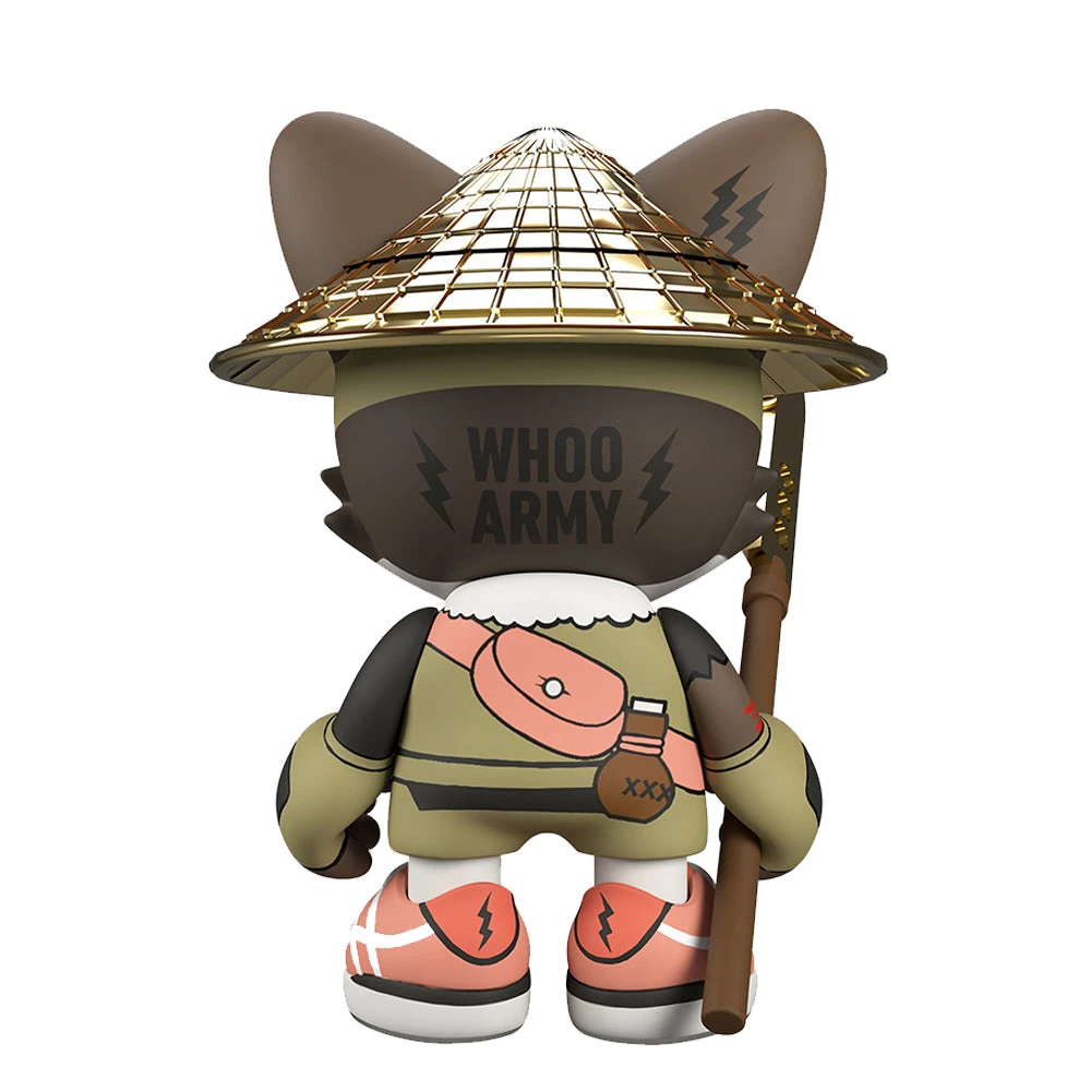 Created in collaboration with legendary NYC Haitian-American mixtape artist DJ Whoo Kid, this stealthy 3.5-inch Janky lives to steal tracks, re-cut them, then bootleg them on the radio. Comes armed with ninja blade, the Whoo Army trademark chrome-gold bamboo hat, crossbody bag, and empty flask of rice wine.