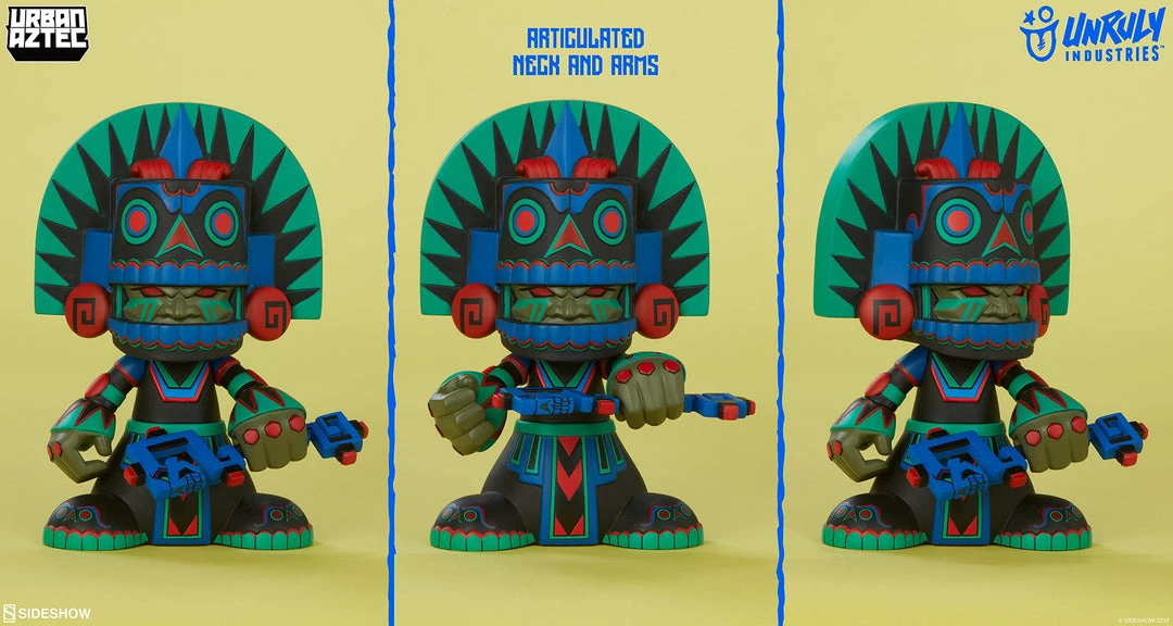Like the Aztec God of Death for which he’s named, Urban Aztec’s Mictlan has returned from the underworld to delight and terrify! This limited edition designer toy Unruly variant paint scheme is blacklight reactive, so you can pay homage to this immortal in his unearthly glow.