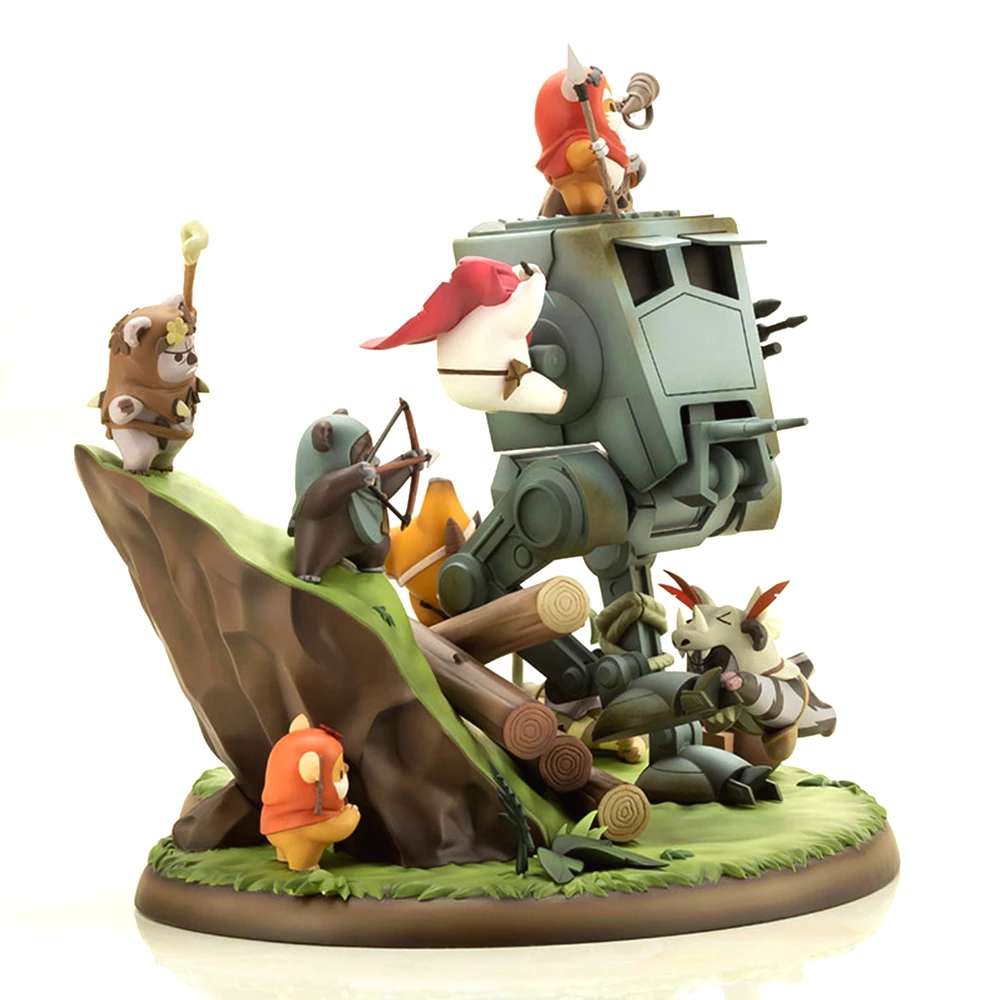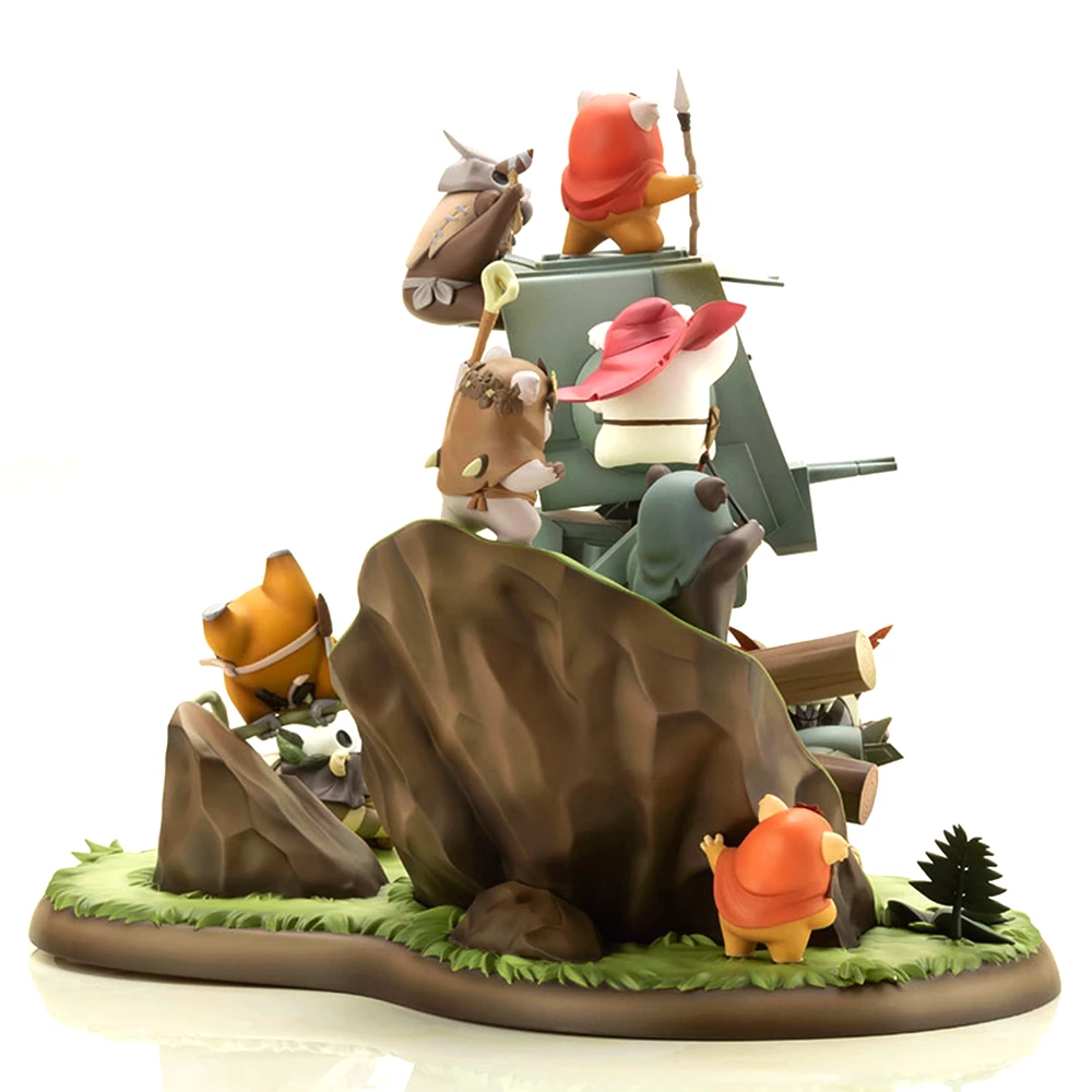 As the name implies, this statue features the Little Rebels in the Battle of Endor™. Brought to life in a fully-detailed diorama, the Ewok™ tribe of the forest moon of Endor™ create a cute and gallant scene in their battle against the Imperial army. The expression of each character fighting around the AT-ST™ is a must-see for fans!